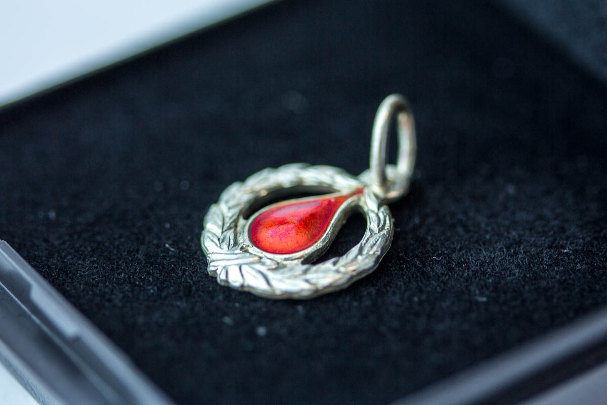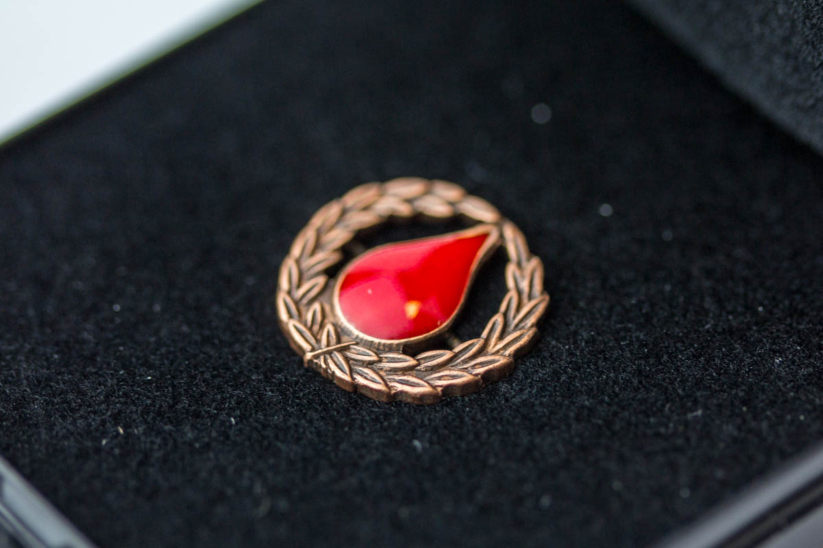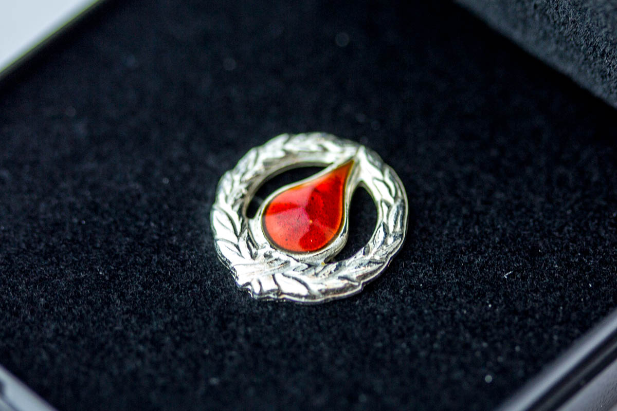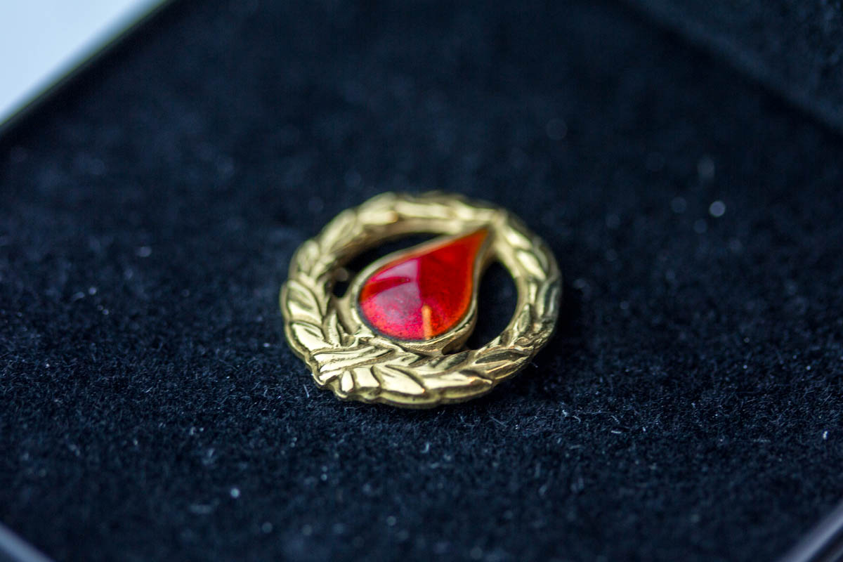 Tá ið blóðgevi hevur givið blóð 10 ferðir, fær hann eina bronsunál. Eftur 25 ferðir er talan um eina silvurnál, 50 ferðir eina gullnál og eina rósu, 75 ferðir um eina gávu umframt eitt blómutyssi. Tá ið blóðgevi hevur givið blóð 100 ferðir, fær hann ein pelikan úr glasi umframt blómutyssi.