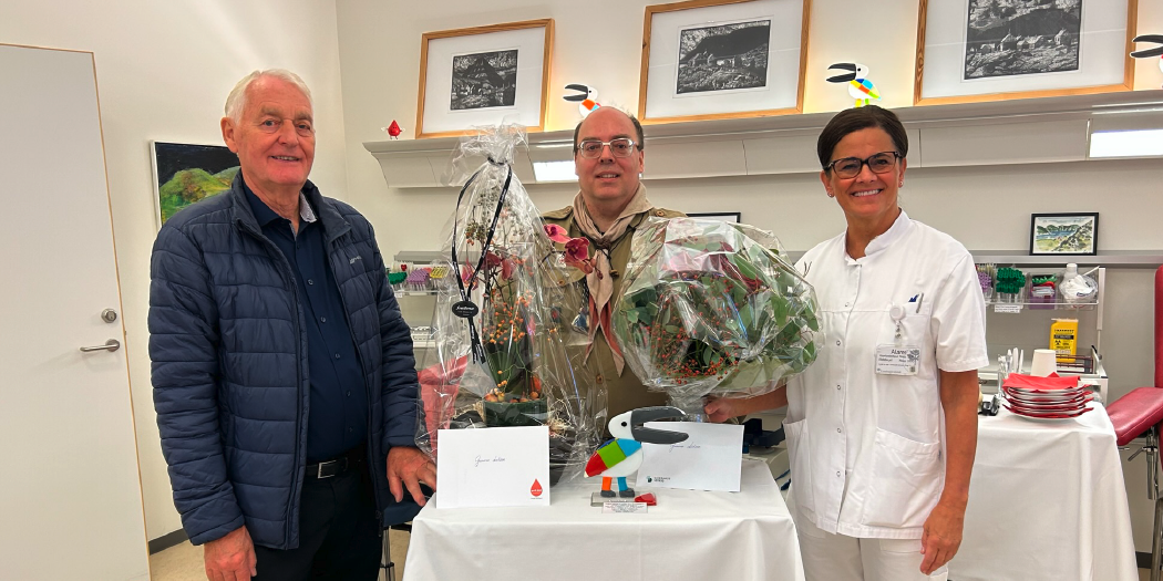 Mikudagin 6. september fyrrapartin var eitt lítið hátíðarhald í blóðbankanum á Landssjúkrahúsinum í sambandi við, at Gunnar Lützen hevði latið blóð 100 ferðir.
